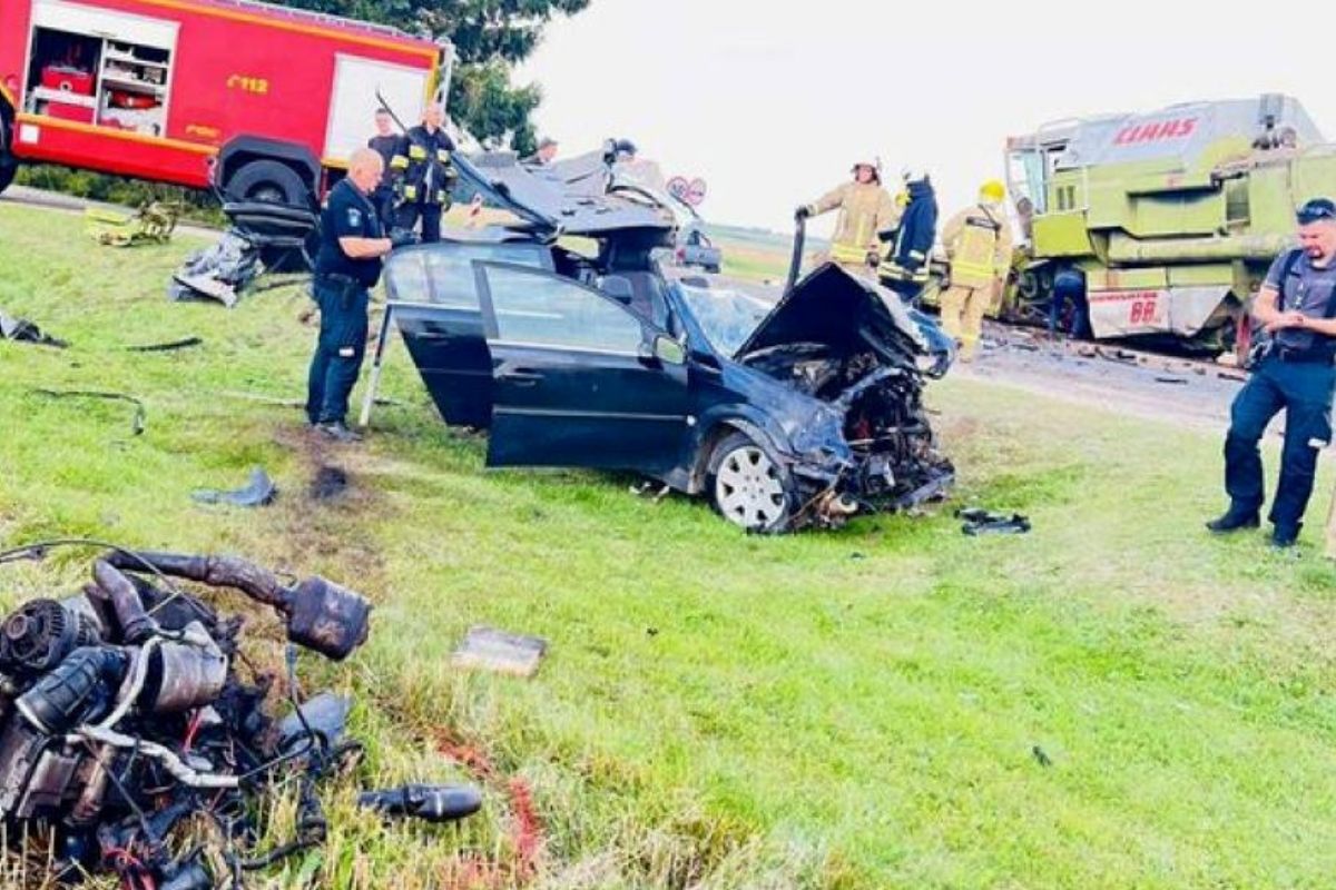 В среду днем на дороге Пальюнишкис– Вабалнинкас, недалеко от деревни Натишкю (муниципалитет Вабалнинкас), на ремонтируемом участке дороги, где движение регулируется светофором, произошло серьезное дорожно-транспортное происшествие. Автомобиль пьяного водителя так сильно врезался в комбайн, что очевидцы даже не смогли распознать марку машины. Водитель был доставлен в больницу с травмами.